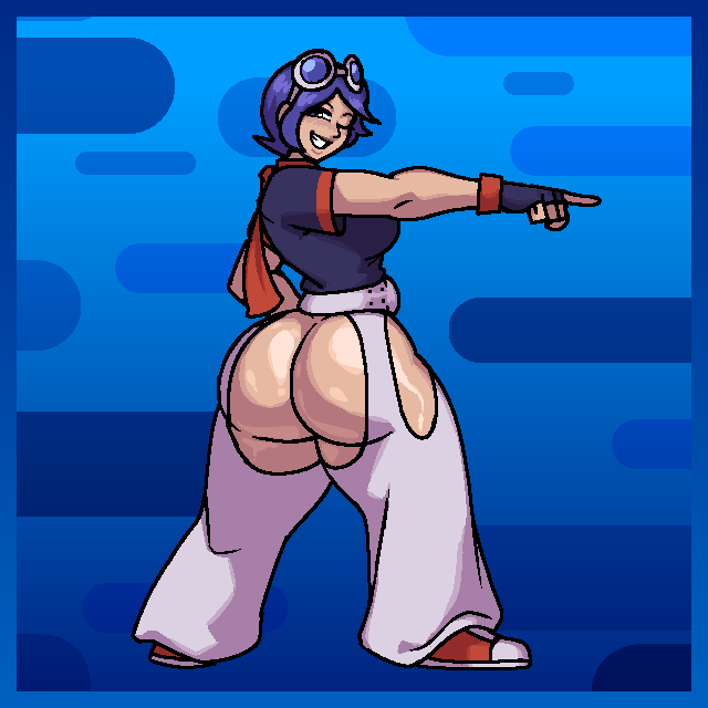Tags: 1girlsadapted costumeback viewblue hairbreastsclothedclothingexposed assgogglesking of fighterslarge asslooking at viewermay leeno pantiesone eye closedpointingposeroyalmilk20scarfsmilesmilingsolowide hipswink