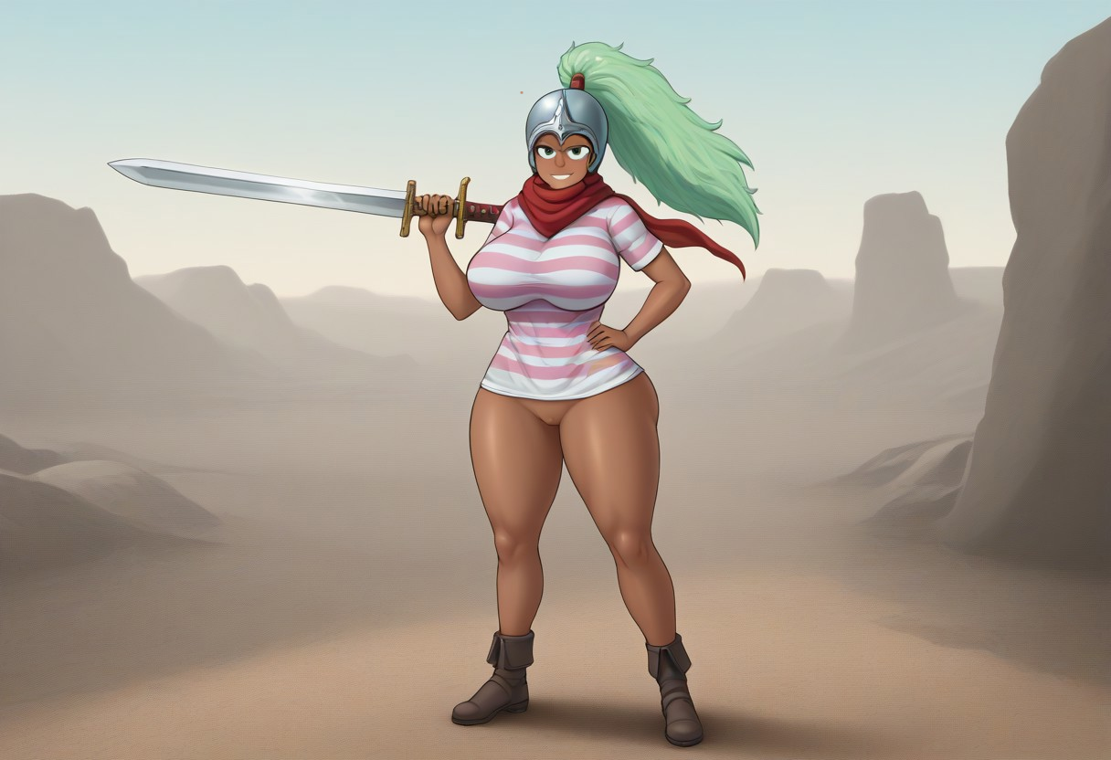 Tags: 1girlsai generatedarmorassbig assbig breastsbreastscivitaicurvydark skindisneydisney channelfront viewgreen hairhand on hiphelmethipshuge asshuge breastskelly (star vs the forces of evil)long hairno pantiesponytailscarfsmilesolostar vs. the forces of evilthighs