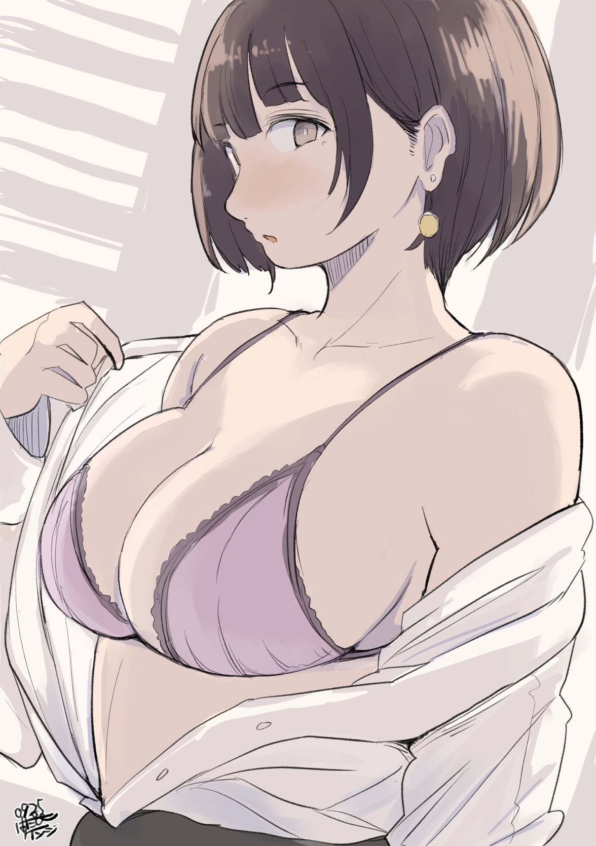 Tags: 1girls2022artist signaturebrabrown eyesbrown haircleavagedeep cleavageearringshadashi no kenjiimageboardjapanese textlarge breastsoffice ladyoriginaloriginal characterRule34shirt openshort hairside eyesideboob