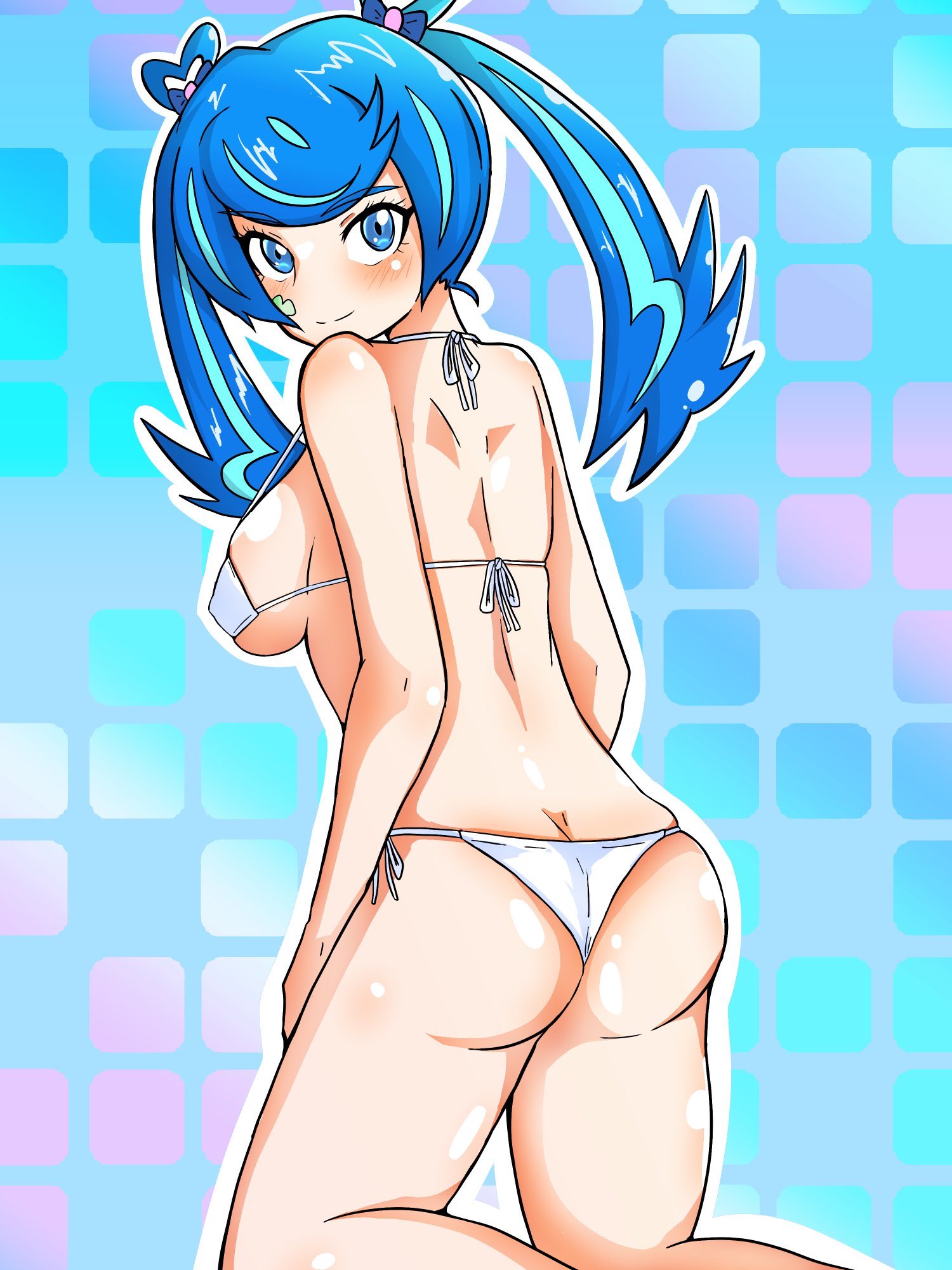 Tags: 1girlsassbikiniblue angelblue hairblushbreastsclosed mouthearringsfemaleheartlooking at viewerlooking backpurple eyesrear viewsmiletajima haltwintailsyu-gi-oh!yu-gi-oh! vrainszaizen aoi