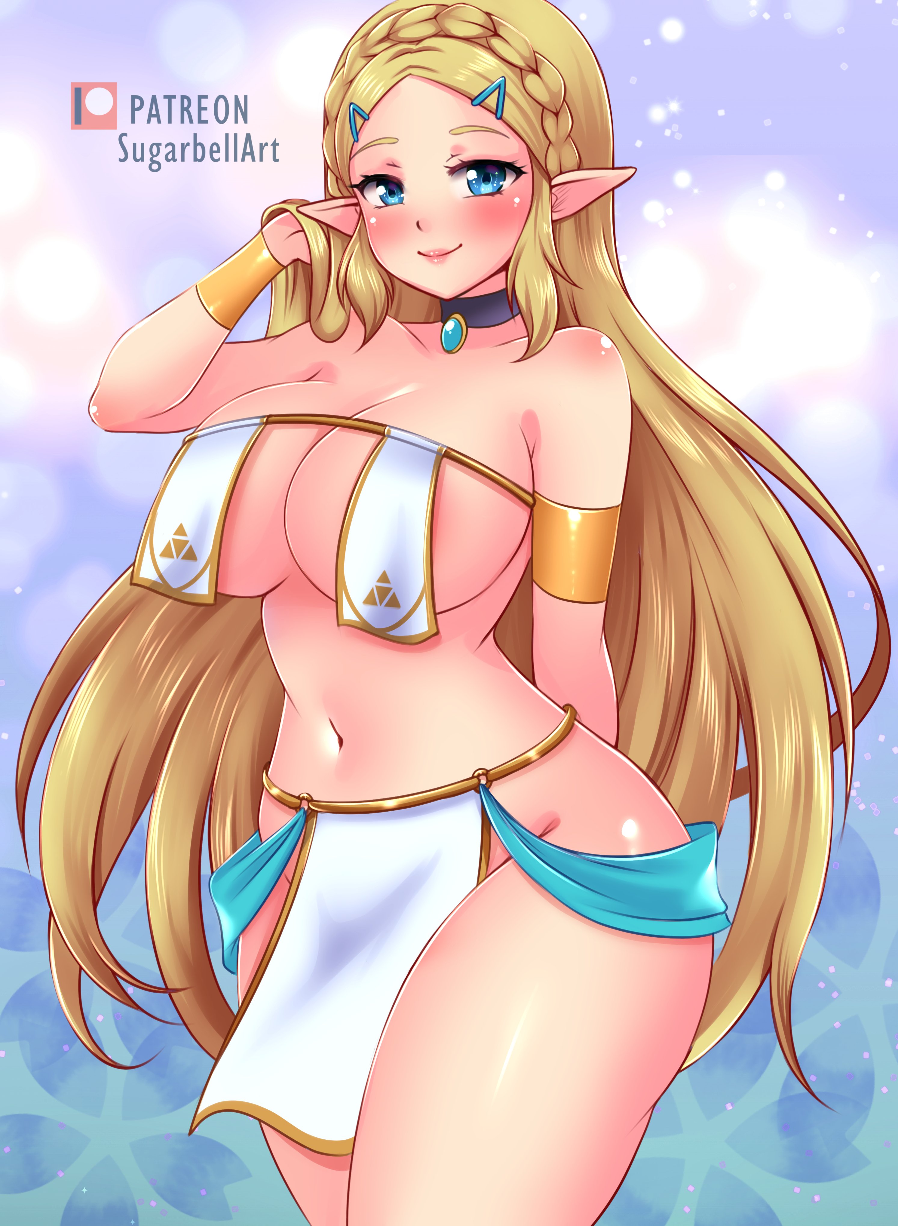 Tags: 1girlsbig breastsblonde hairbreastscleavageclothedclothinggreen eyeslarge breastslong hairlooking at viewermidriffnintendoprincess zeldaskythe legend of zelda