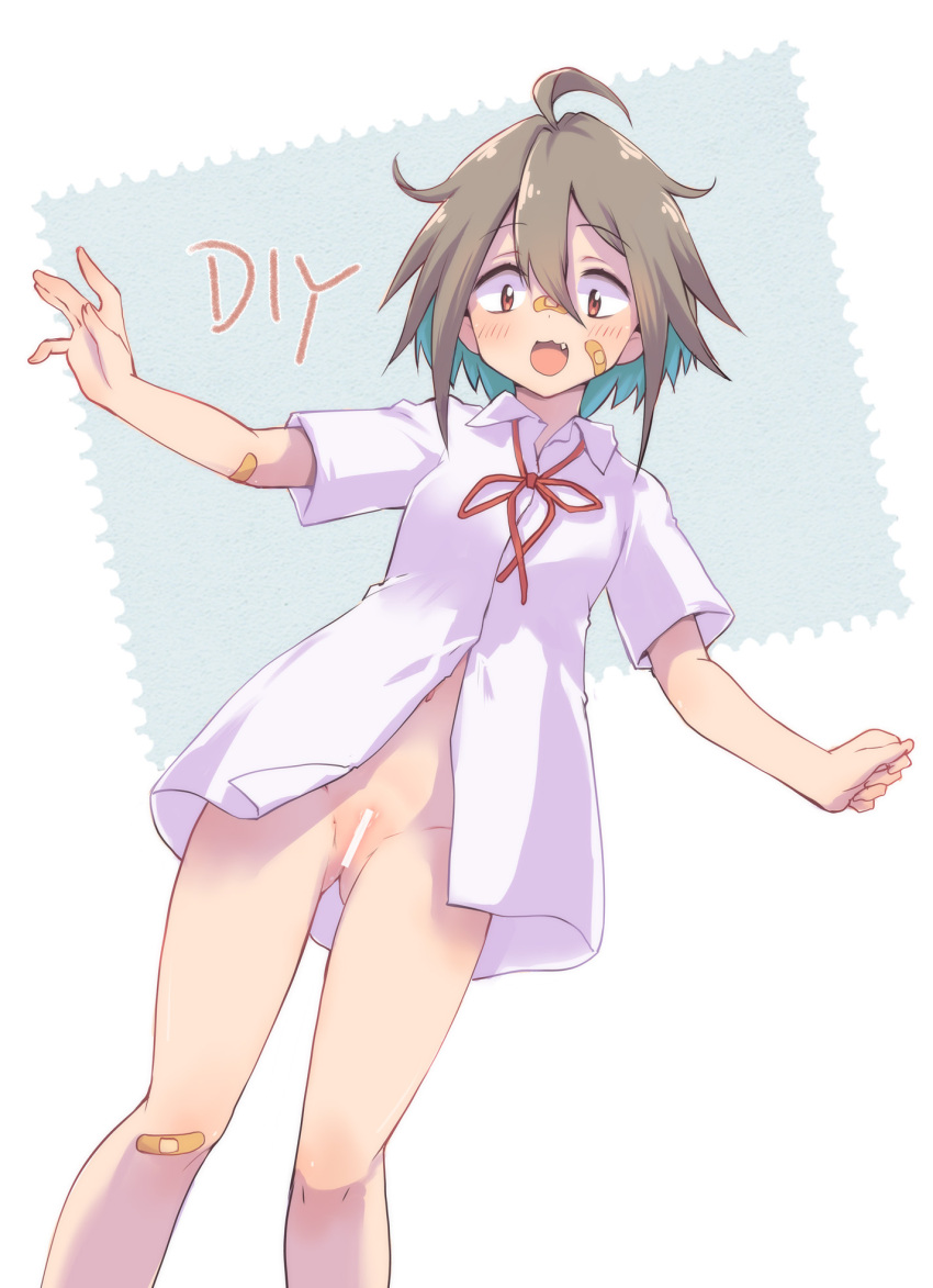Tags: ahogebandaidbandaid on armbandaid on facebandaid on legbandaid on noseblushbottomlessbreastsbrown eyesbrown hairdo it yourselffemalehighresimageboardmakita yoshiharunavelno pantiesoerba yun fangopen mouthpussyRule34shinyshiny hairshirtshort hairsimple backgroundsmall breastssmilesolowhite shirtyua serufu
