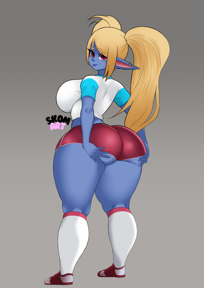 Tags: 1girlsbig assbig breastsblonde hairblue skincrop topfemalefemale onlyhuge assimageboardleague of legendsrule 34short shortsskom (artist)solothick thighswide hipsyordle