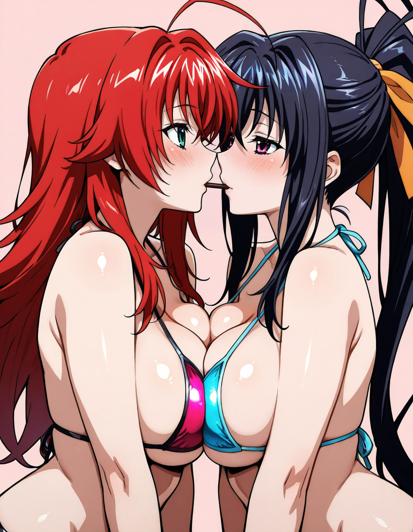 Tags: 2girlsahogeai generatedantenna hairblack hairblue green eyesblushbrabreasts pressed togethercouplecrimson haircurvyfemale onlyhair ribbonhigh school dxdimageboardlarge breastslight skinlooking at each otherorange ribbonpockyponytailrule 34symmetrical dockingvery long hairviolet eyesvoluptuousyuri