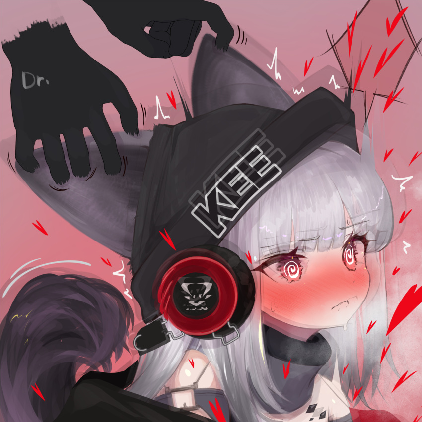 Tags: 1boy1girlsanimal ear fluffanimal earsarknightsblushfox earsfox tailfrostleaf (arknights)grey hairhatheavy blushheavy breathingimageboardkemonomimimatatamaered eyesrule 34sensitivesimple backgroundupper bodywhite hair