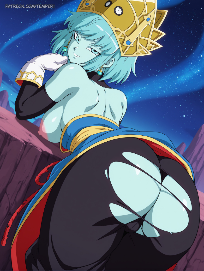 Tags: 1girlsaeosai generatedaqua hairassaurorabare shouldersblue eyesblue hairblue skinbreastscameltoecolored skincrowndetached sleevesdragon balldragon ball heroesdressearringselbow glovesfrom behindglovesimageboardjewelrylarge breastslooking at viewerlooking backnightnight skynipplesoutdoorspantspatreon logopatreon usernamerule 34short hairskysmilesolostar (sky)starry skysuper dragon ball heroestorn clothestorn pantsweb addresswhite glovesyellow headwear