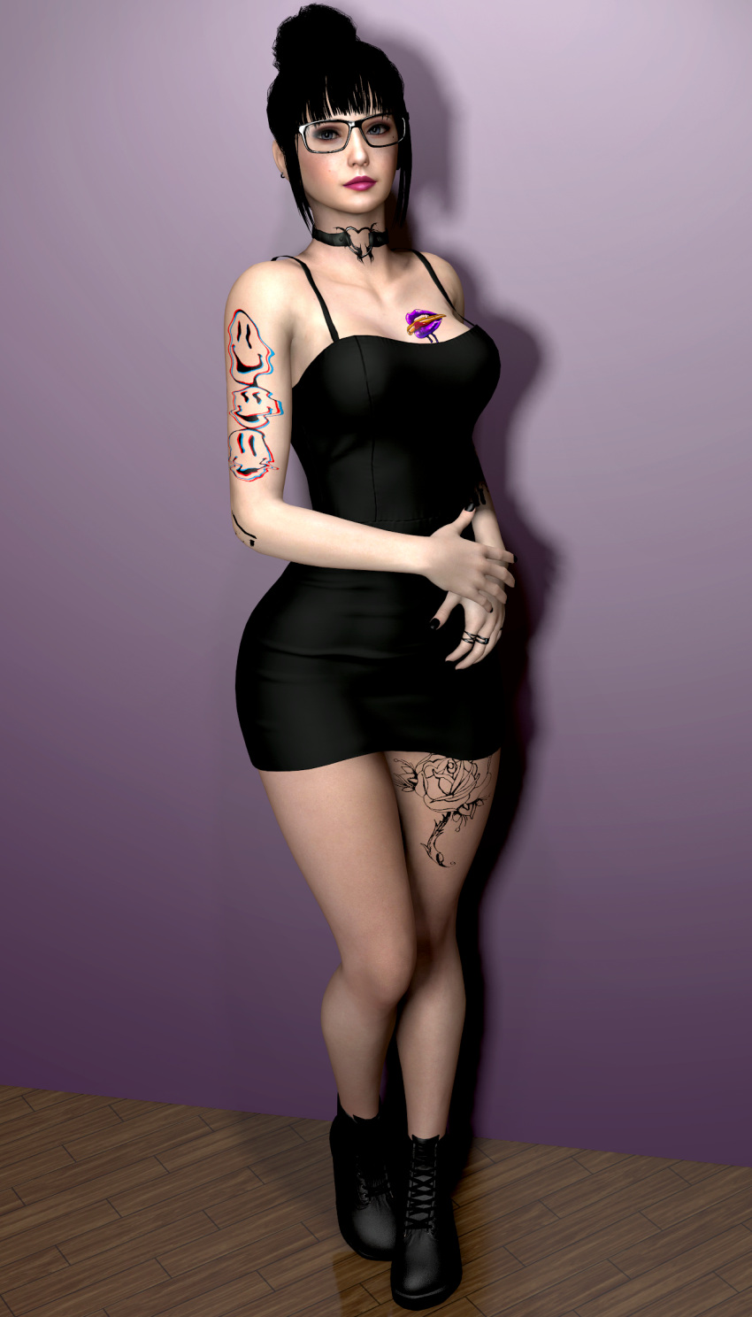 Tags: alex dominobangsblack hairbootschokercleavagedressear piercingearringsfemalefemale focusfemale onlyglassesgoth girlhair bunimageboardnopixelpainted nailsrule 34short dresssolo femaletattootattoosthighsyuri