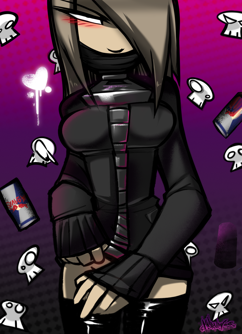 Tags: black legwearblack stockingsblushbreastscovering pussyfemale focusfemale onlyhiding pussyhumanimageboardlidded eyeslight skinlooking at viewermadragonpurple backgroundredbullrule 34skullsweaterwithout pantieszipper