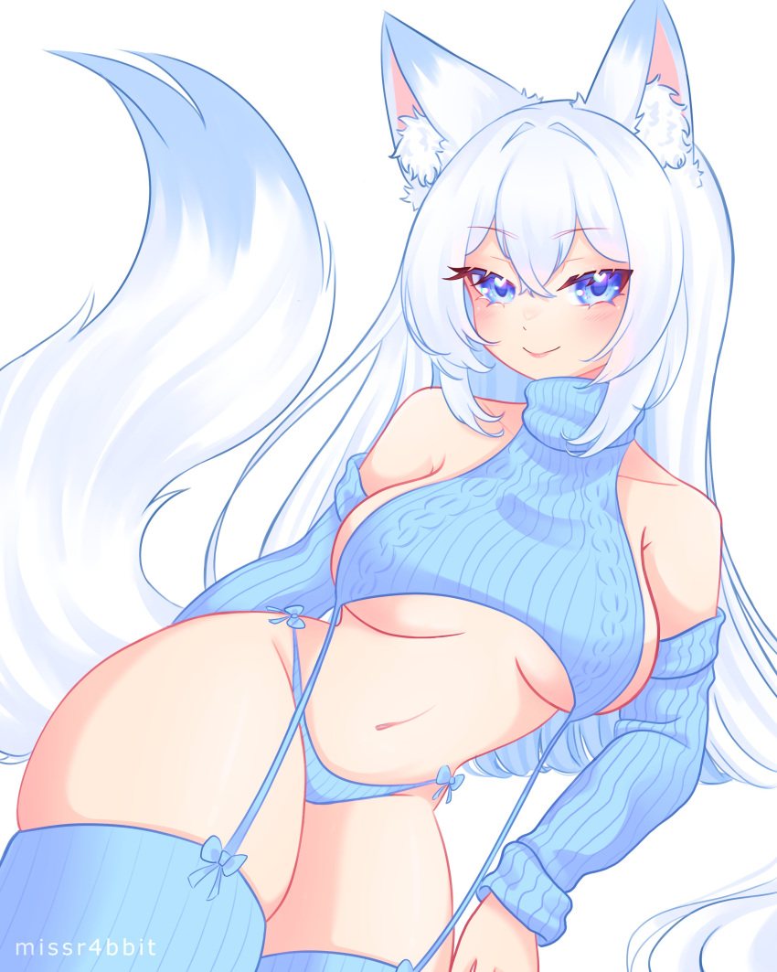 Tags: 1girlsanimal earsbare shouldersbelly buttonblue eyesbreastsdetached sleeveseyebrows visible through hairfemalefemale onlyfox earsfox girlfox tailhuge breastsimageboardlight skinlight-skinned femalemissr4bbitrule 34solotailv•mythzvirgin destroyer sweatervirtual youtuberwhite hairyukime (vtuber)