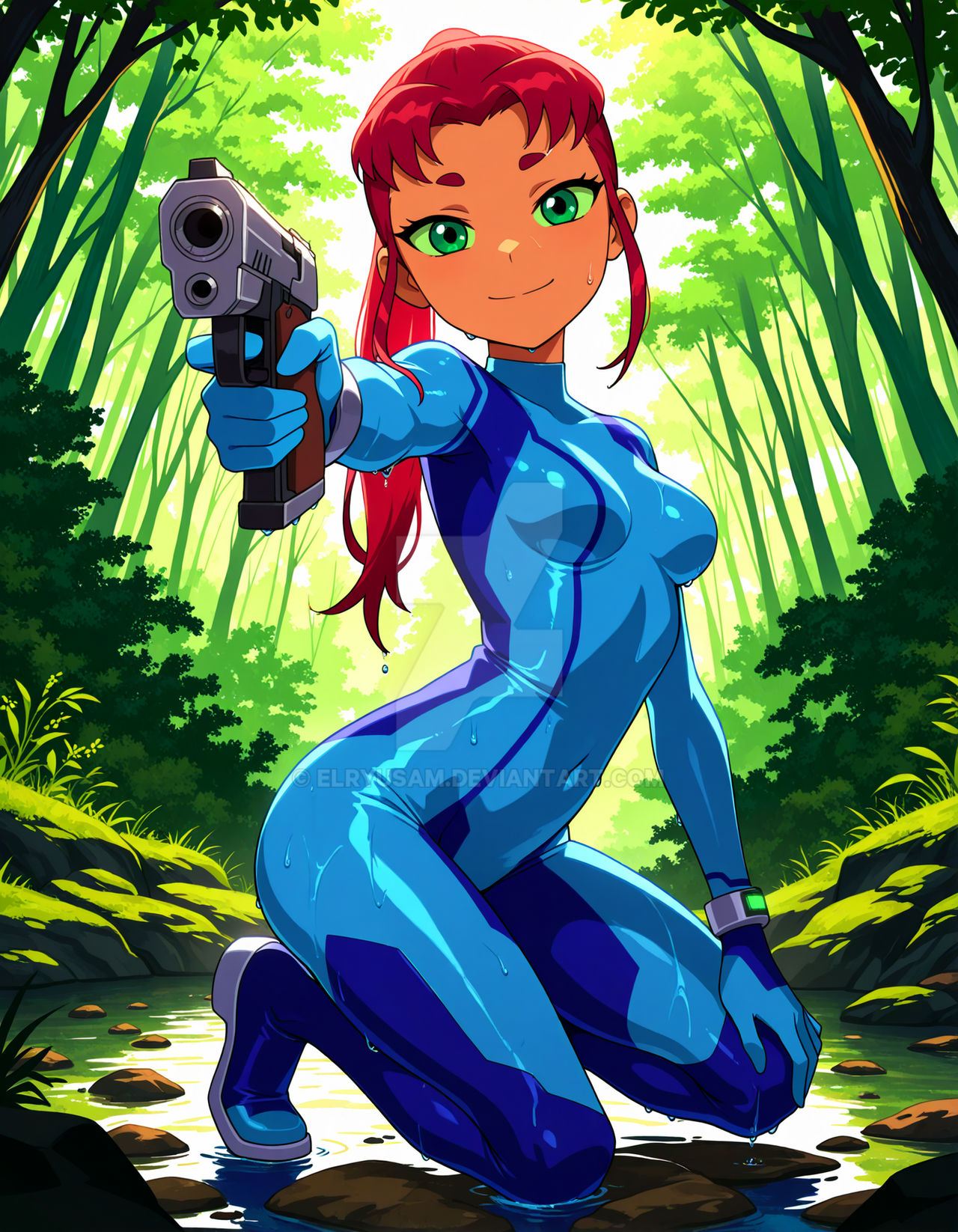 Tags: blue leotardcartoon networkdc comicsdc super hero girlsdrawinggreen eyeshand on hipholding gunimageboardmetroidnintendonot pornorange bodyorange skinred eyebrowsred ponytailrule 34starfire (teen titans)teen titanswet bodywet leotardzero suit samuszero suit samus (cosplay)