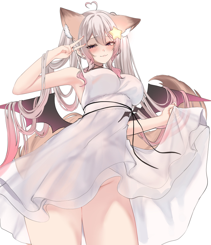 Tags: ahogeanimal ear fluffanimal earsannytfarm uparmpitsass visible through thighsbangsbare shouldersblushbreastsclosed mouthcowboy shotdresseyebrows visible through hairfemalegradient hairhair between eyeshair ornamentheartimageboardlarge breastslong hairlooking at viewermulticolored hairpink hairrule 34see-throughsleevelesssleeveless dresssmilesolostandingstar (symbol)star hair ornamentstripedtagmetailthighstwintailsvvertical stripesvery long hairwhite backgroundwhite dresswings