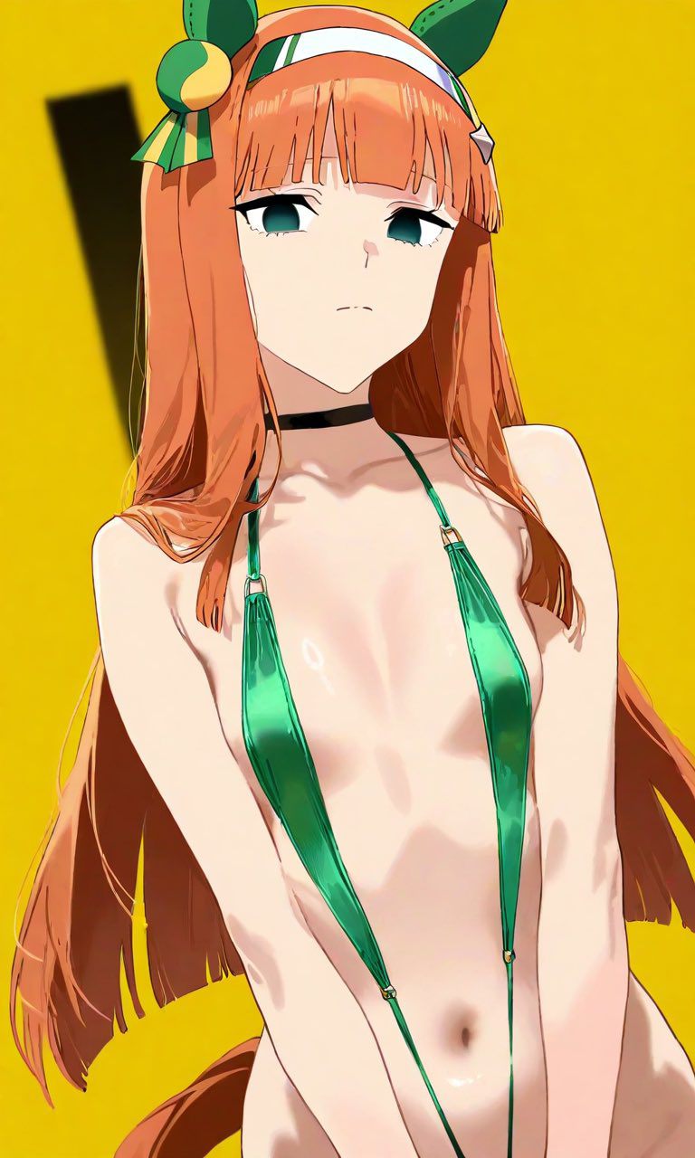 Tags: ai generatedanimal earsfemalegreen eyeshair bandhorse girlimageboardlong hairorange hairrule 34silence suzuka (umamusume)sling bikinismall breastsumamusumeumamusume pretty derby
