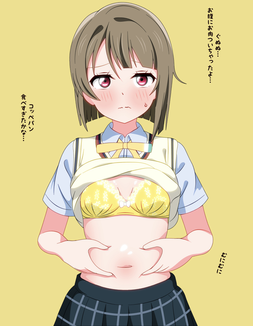 Tags: 1girlsabsurdresanime coloringblue shirtblushbrabreastsclothes liftcollared shirtcommentarydress shirtfrowngrey skirthighresholding own stomachimageboardjitomelooking at viewerlove live!love live! nijigasaki high school idol clubnakasu kasumineck ribbonnijigasaki school uniformplaid clothesplaid skirtpleated skirtribbonrule 34school uniformshinonome sakurashirtshirt liftshort sleevessimple backgroundskirtsmall breastssolosplit mouthstomachsummer uniformsweatdropsweater vestsweater vest lifttranslation requestunderwearupper bodywavy mouthweight consciouswhite shirtyellow backgroundyellow brayellow ribbonyellow sweater vest