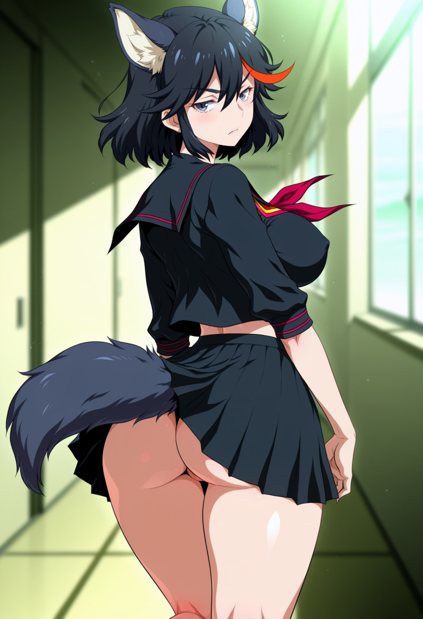 Tags: ai generatedanimal earsassblack hairblack shirtblack skirtcovered nipplesfemalefrom behindfurry femalegrey eyeshalf-closed eyesimageboardkill la killkneepitslarge breastslooking at viewerlooking backmatoi ryuukorule 34school uniformsolostandingtailthick thighsthighswide hips