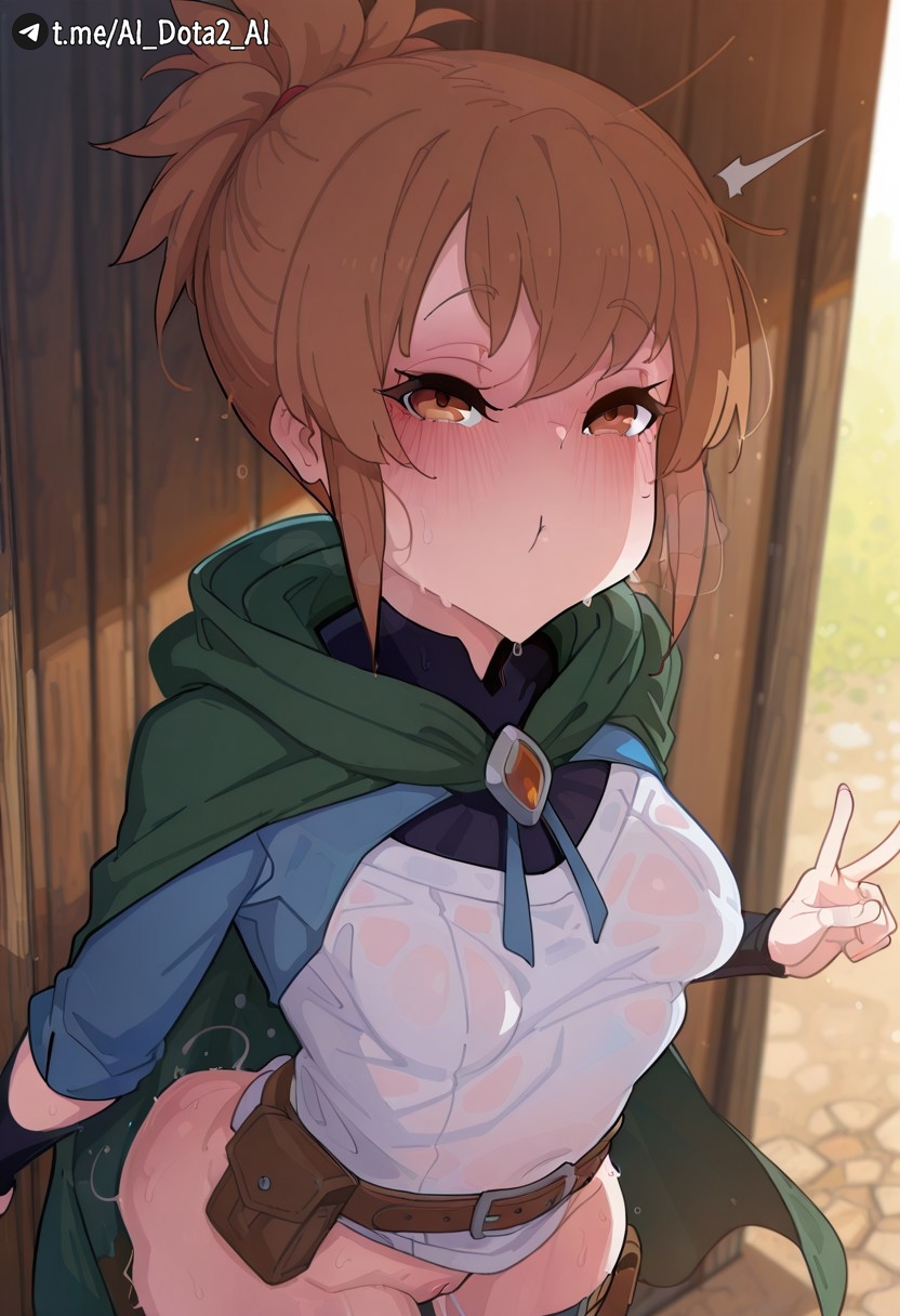Tags: ai dota aiai generatedbeltbelt pouchblushbreastsbrown beltbrown eyesbrown haircapecloakdota 2femalegreen capegreen capelethoodimageboardkakure eria (ai style)looking at viewermarcimarci (dota)outdoorsponytailpouchrule 34shirtshort hairsolosweatvwetwet clothes