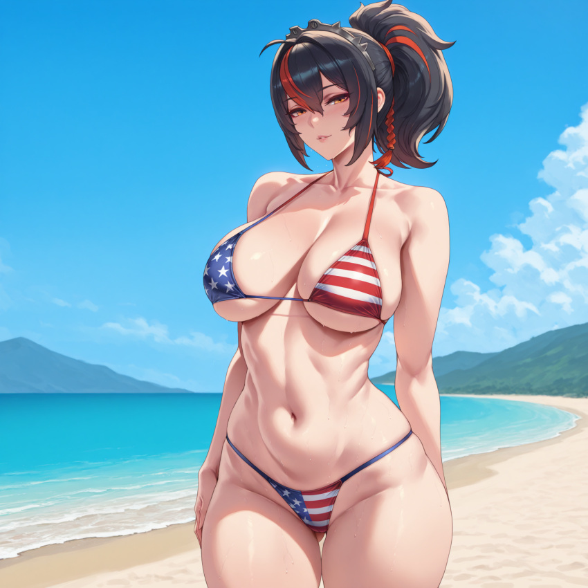 Tags: ai generatedamerican flagamerican flag bikiniassass focusass upbeachbeach backgroundbellybelly buttonbig assbig breastsbikinibreastsdat assfemaleflag bikiniflag printhorse tailimageboardlong hairmogu-tyannew eridu public securitypawgrule 34zenless zone zerozhu yuan