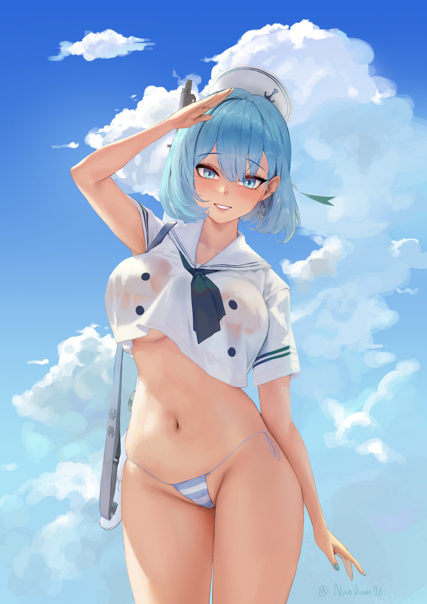 Tags: absurdresanchor earringsarm upascotbikiniblue ascotblue bikiniblue eyesblue hairblue nailsblue skybreastscloudcloudy skyearringsfemalehathighresimageboardjewelrylarge breastslooking at viewermicro bikininail polishnankam76naveloriginalparted lipsrule 34sailor collarsailor hatsalutesee-through clothessee-through shirtshirtshort hairside-tie bikini bottomskysmilesolostandingstrapstriped bikinistriped clothesswimsuitunderboobwhite sailor collarwhite shirt