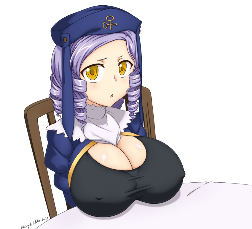 Tags: 1girlsabridged-satokoalternate breast sizeartist nameartist signatureblushbreastsbreasts on tablechaircleavagedlanor a knoxdrill hairfemalefemale onlygrey hairhuge breastsimageboardlarge breastslight skinlight-skinned femalelooking at viewernipple bulgenipples visible through clothingopen mouthrule 34solotableumineko no naku koro niwhite backgroundyellow eyes