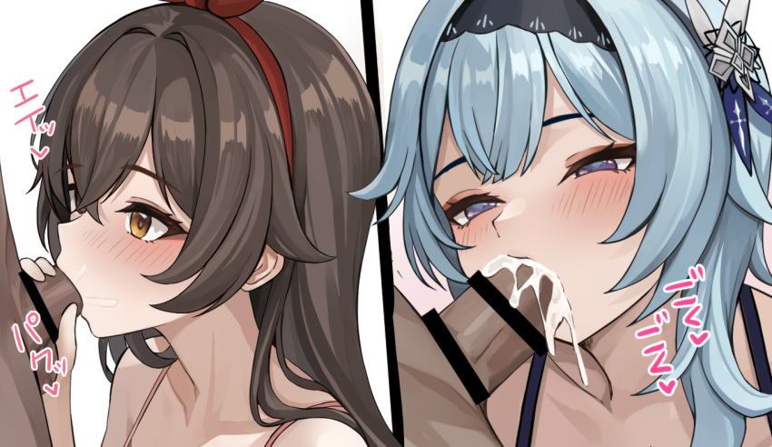 Tags: 1boy2girlsamber (genshin impact)bar censorblack hairbandblue hairblushbrown eyesbrown haircensoredcommentary requestcumcum overflowdark skindark-skinned maleeula (genshin impact)fellatiogenshin impacthair between eyeshair ornamenthairbandhalf-closed eyesimageboardlong hairmultiple girlsoralpaid reward availablepenisportraitpurple eyesred hairbandrule 34se34taisimple backgroundspaghetti strapstraighttranslation requestwhite background