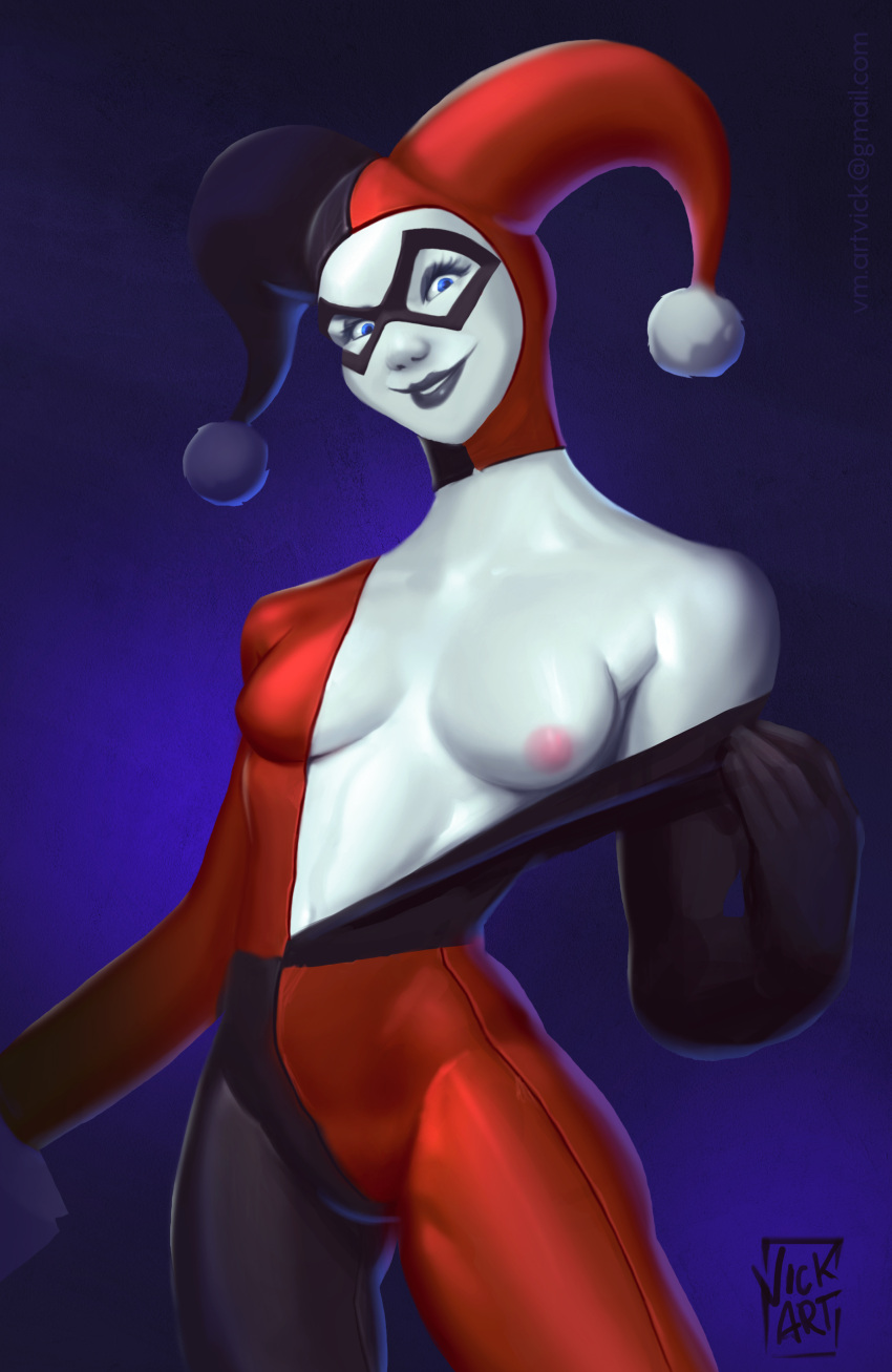 Tags: 1girlsbatman (series)black lipstickblue eyesbreastsdcdc comicsharley quinnharley quinn (classic)high resolutionhighresimageboardmedium breastsnipplespale skinpale-skinned femalepink nipplesrule 34showing breastsshowing offsmilesolosolo femalevickart
