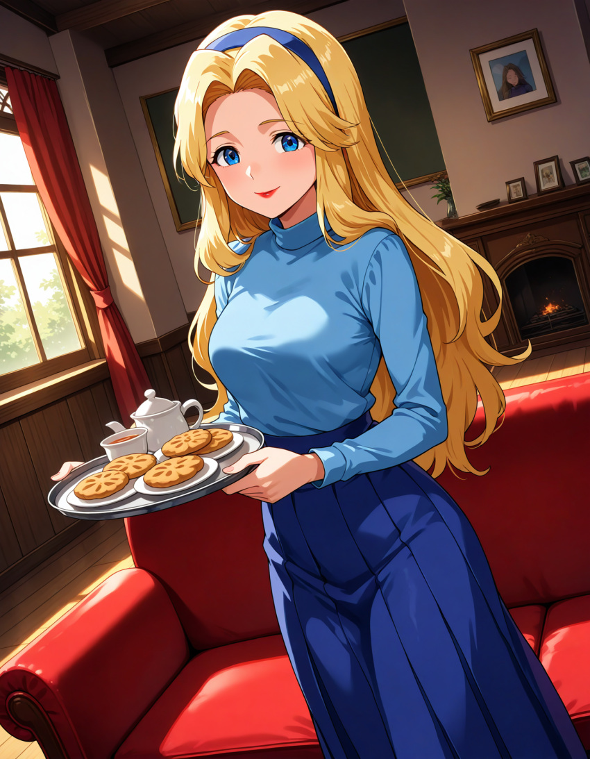 Tags: 2025ai generatedblonde eyebrowsblonde femaleblonde girlblonde hair femaleblue clothesblue eyes femaleblue hairbandcoffee tabledeviantartelryusamholding platehouse backgroundimageboardmaria robotnikmature femalemature womanmetamouth closednot pornorange cheeksred lipstickrule 34segasonic the hedgehog (series)