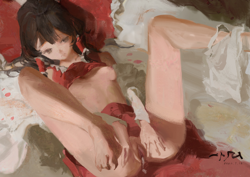 Tags: 1girlsafter sexbloomersbloomers around one legbreastsclothes liftcumcum in pussydiao (nrays)femalefrownhakurei reimuhighresimageboardlegs uplooking downnipplesno pantiesnraystudiooverflowpainterlypainting (artwork)pussyred skirtred vestreimu hakureiRule34shirt liftskirtsmall breastssolotouhouunderwearvest