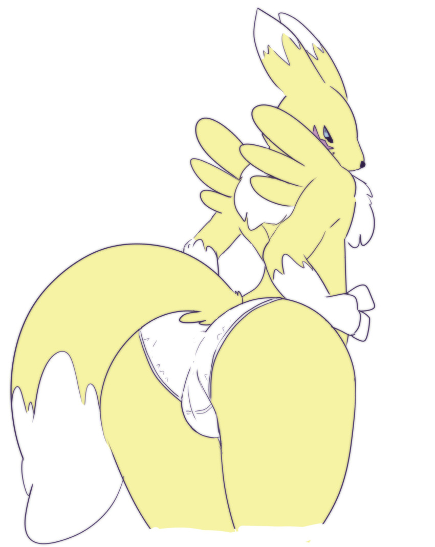 Tags: anthroassbandai namcoblue eyescameltoecanidcanineclothingdigimondigimon (species)dipstick tailfemalefoxfurgloves (marking)hardscaleshi resimageboardleaning overmammalmarkingspantiesrear viewrenamonrule 34simple backgroundsolostandingtailtail markingsunderwearwhite backgroundwhite bodywhite clothingwhite furwhite pantieswhite underwearyellow bodyyellow fur