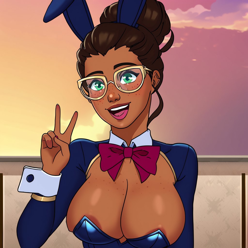 Tags: 1girlsai generatedarcanebig breastsbreastsbrown hairbrown skinbunny costumebunny earbunny earsbunny ears (cosmetic)bunny girlbunny suitbunnygirlbunnygirl outfitbunnysuitcleavagefake animal earsfemalefemale focusfemale onlyglasseshappyimageboardlarge boobslarge breastsleague of legendslooking at viewerpeace signpeace symbolplayboy bunnyplayboy bunny costumeplayboy bunny earsplayboy bunny leotardplayboy bunnysuitplayboy outfitplayboy suitrabbit earsrule 34short hairsky youngsmilesolosolo femalesolo focusv