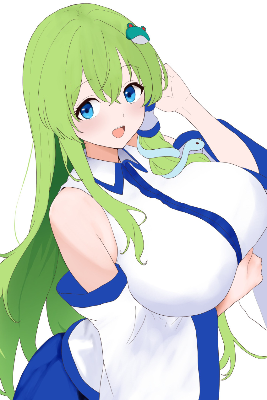 Tags: :darm under breastsbare shouldersblue eyesblue skirtblushbreastscrossed bangsdetached sleevesfemalefrog hair ornamentfrom abovegreen hairhair between eyeshair ornamenthair tubeshand uphappyhuge breastsimageboardlong hairlong sleevesmoriforest1040open mouthrule 34sanae kochiyasimple backgroundsingle hair tubeskirtsmilesnake hair ornamentsolotouhouvery long hairvestwhite backgroundwhite vestwide sleeves