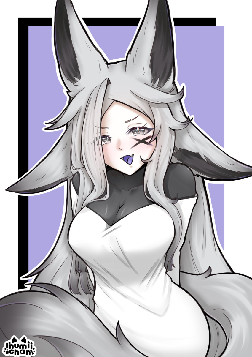Tags: animal ear fluffanimal earsartist nameblushbreastscleavagedya rikku (vtuber)eyebrows visible through hairfemalefox earsfox tailgrey hairimageboardlarge breastslong hairlooking at vieweropen mouthoutlinerule 34shirtsilver hairsmilesolostripedstriped backgroundtailvery long hairvyugenwhite eyeswhite outline