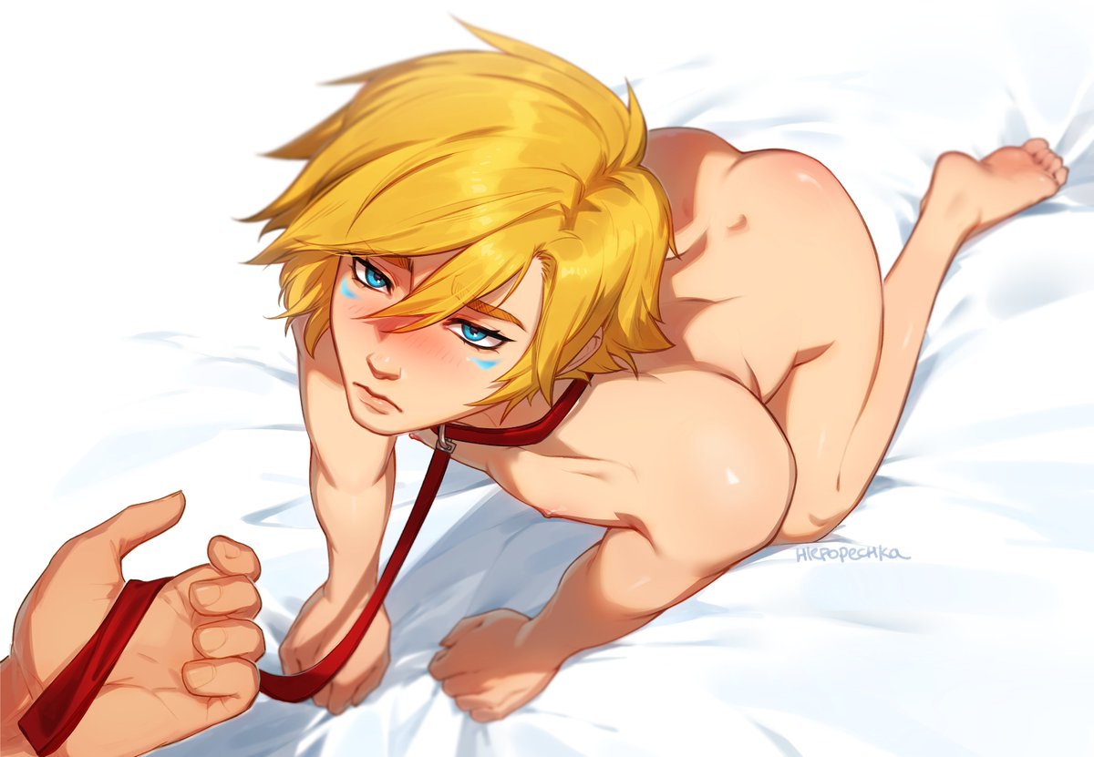 Tags: blonde hairezrealface markingshlepopechkaimageboardleague of legendsleashleash and collarlooking at viewerlooking upmalemale onlynude malerule 34twink