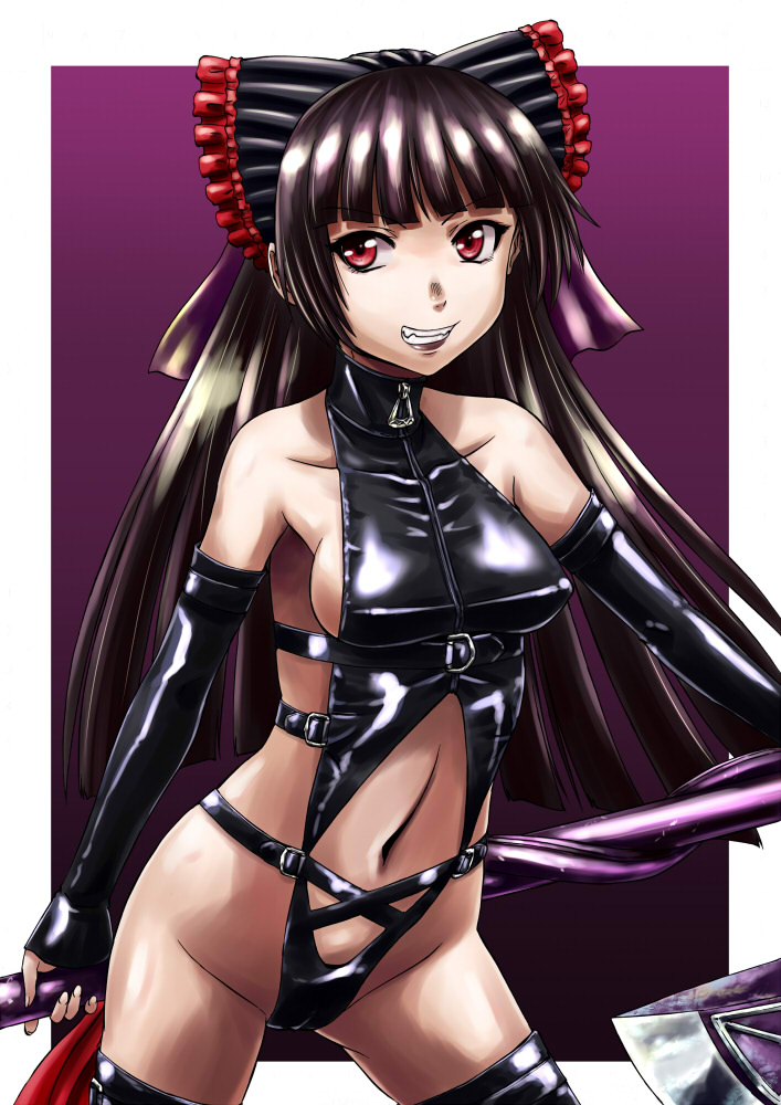 Tags: black hairbreastsdemigoddesselbow glovesfangsgate - jieitai ka no chi nite kaku tatakaerigloveshair ribbonimageboardleather clothinglooking at viewerred eyesrory mercuryrule 34sao satoruweapon