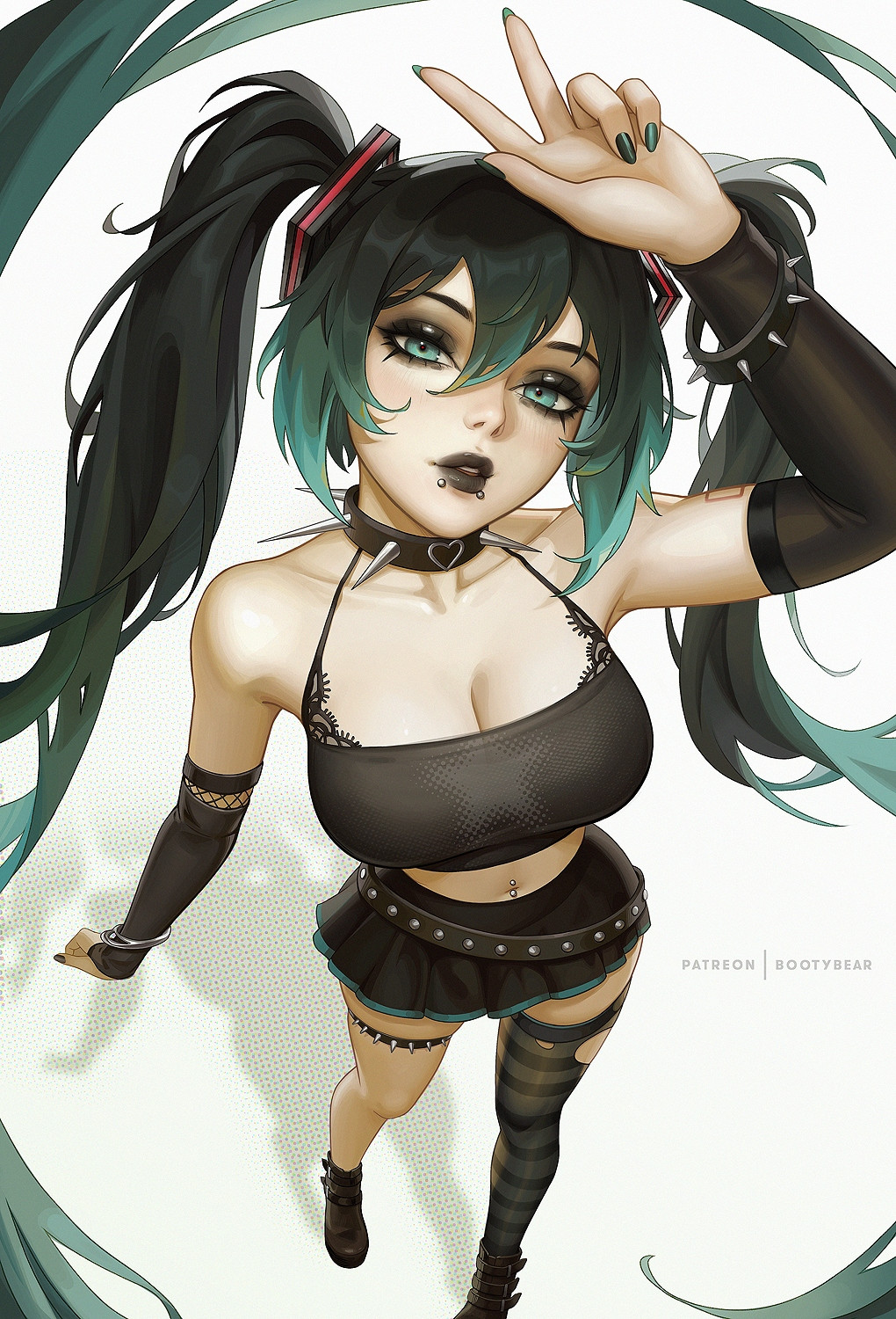 Tags: 1girlsblack hairblack skirtblack topwearblue eyesbootybearchokercleavagefemalegothgoth girlgothichatsune mikuhatsune miku (fortnite)imageboardmikumikudancerule 34solosolo femalesolo focusthighhighsthighstwo tone hair