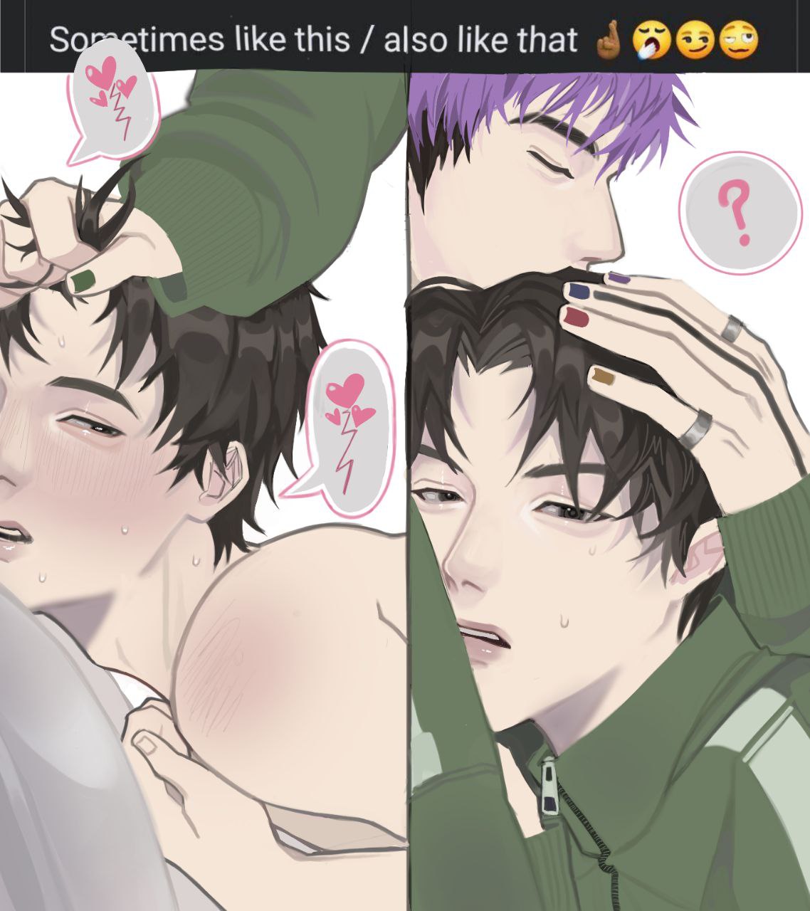 Tags: 2boysblack hairblushblushinggaygay sexholdingholding headimageboardimplied sexkissinglee myung-gimeme referencepainted nailspulling hairpurple hairrule 34squid gametattootattoosthanos (squid game)