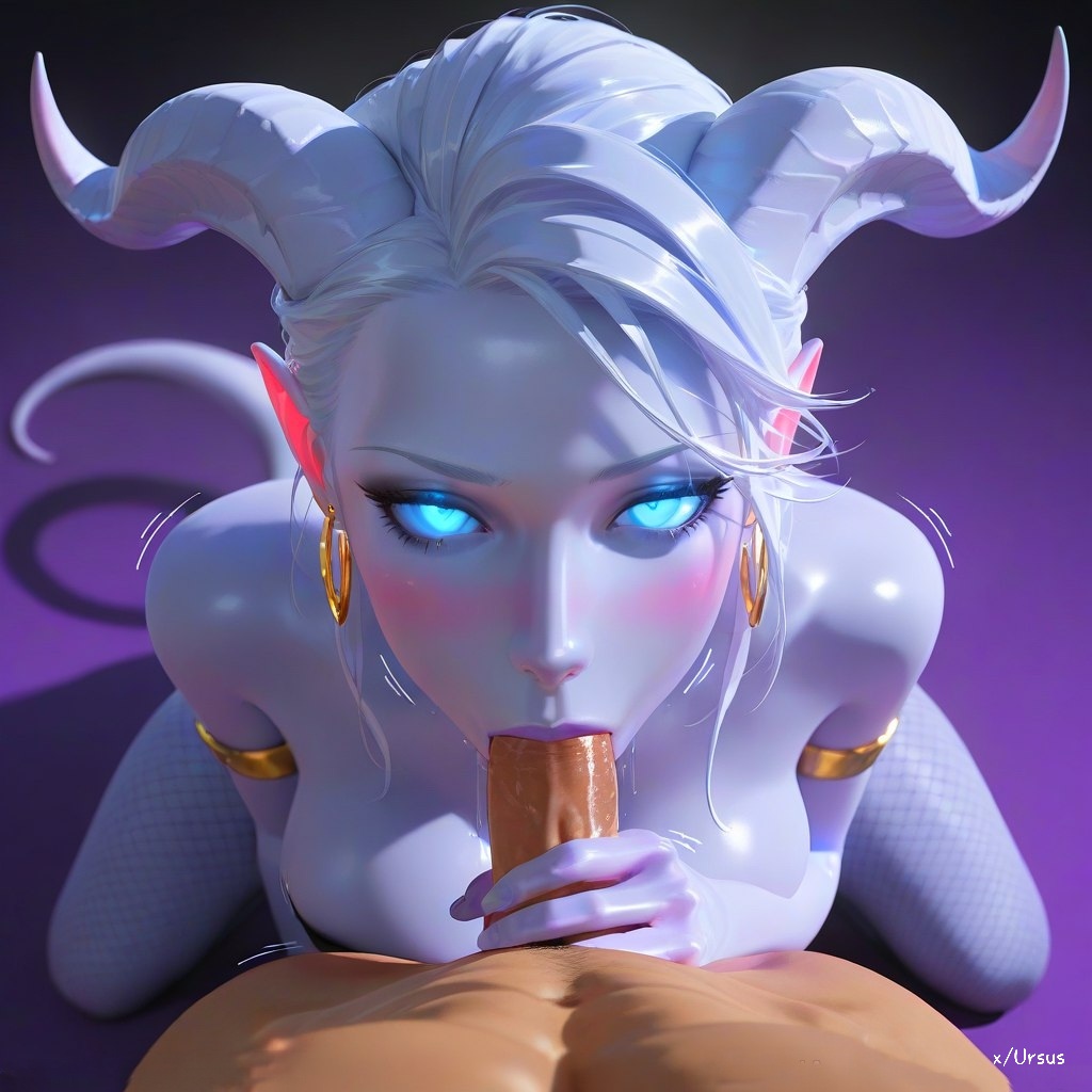 Tags: 3dai generatedartas9972blowjobblushbreastsdraeneidraenei femaleearringsglowing eyeshornsimageboardkneelingmascararule 34stockingstailwarcraftwhite hairworld of warcraft