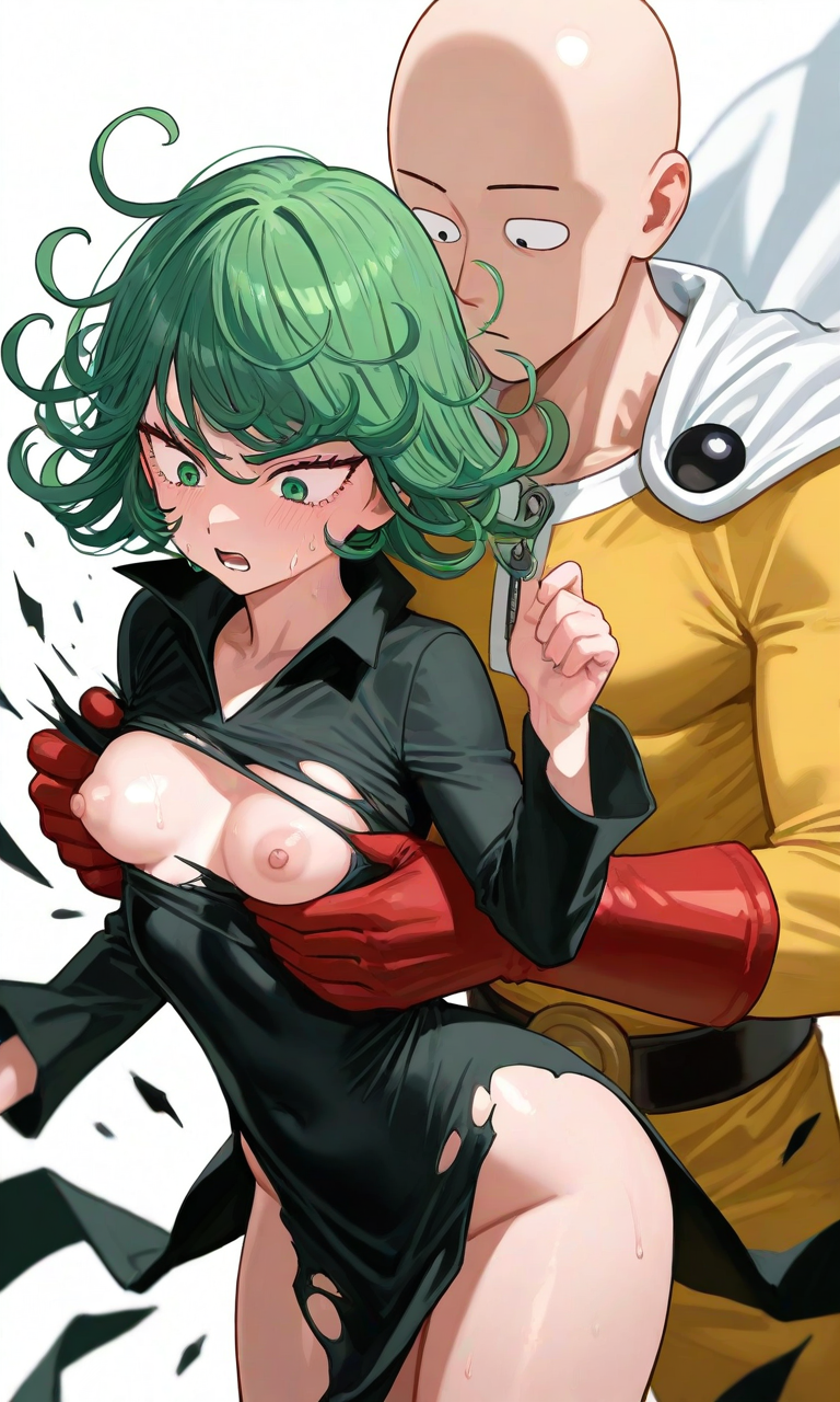 Tags: 1boy1girlsai generatedbaldbeltblack dressblushbreastscapecurly hairfemaleglovesgreen eyesgreen hairimageboardjumpsuitkosine1777nipplesone-punch manred glovesripped clothingrule 34saitamasmall breastssuperherosuperheroinesurprisedsurprised expressiontatsumakiwhite capeyellow jumpsuit