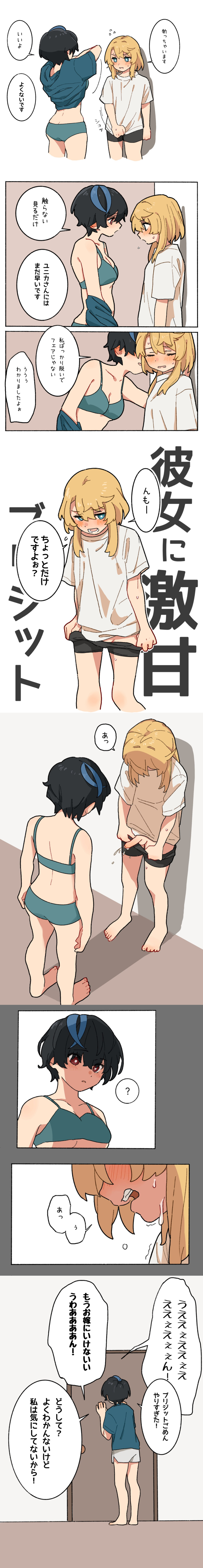 Tags: 2girlsballsblack hairblonde hairblue eyesblue highlightsblue shirtblushblushing profuselybrabreastsbridgetbrown backgroundbutt crackcleavageclose-upclosed eyescolorcomiccumcum on penisdialogueembarrassederectioneyes visible through hairfanon coupleflusteredfull-face blushgreen bragreen pantiesgrey backgroundgrey borderguilty gearguilty gear strivehalf-closed eyeshighresimageboardimminent sexjapanese textlightinglong hairlooking at anotherlooking at partnerlooking awaymotion linesnervouspantiespants downpartially clothedpenispremature ejaculationquestion markred eyesromanticromantic couplerule 34Rule34shirt liftside viewsound effectsspeech bubblespoken question markstandingsweatdroptrans womantransfemunderwear onlyunika (guilty gear)unseen female facewhite backgroundwhite shirtwholesomewide eyedyanol1022yuri