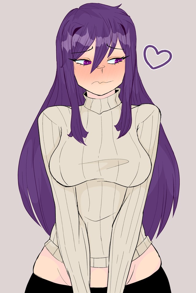 Tags: 2:3blushbreastsdoki doki literature clubgray backgroundgrey backgroundhearticiasoneimageboardleggingslong hairpurple eyespurple hairRule34sweateryuri (doki doki literature club)