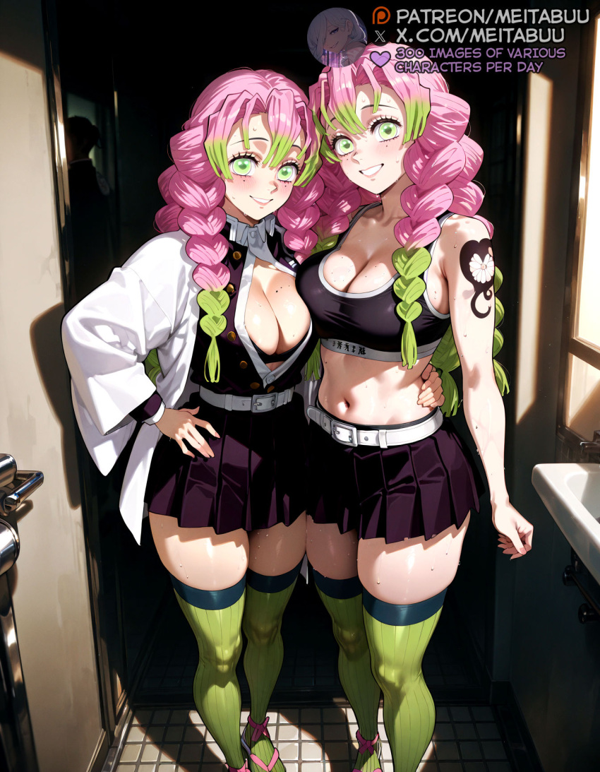 Tags: 2girlsai generatedarm around waistbeltblack skirtblack sports brablushbraidbreastscleavagedemon slayerdemon slayer uniformdual personafaucetfull bodygradient hairgreen eyesgreen hairgreen thighhighsgrinhand on another's hiphand on own hiphaoriimageboardjapanese clotheskanroji mitsurikimetsu no yaibalarge breastslong hairlong sleeveslooking at viewermeitabuumidriffminiskirtmirrormolemole under each eyemole under eyemulticolored hairmultiple girlsmultiple molesnavelpink hairpleated skirtribbed thighhighsrule 34sandalsskirtsmilesports brastandingsweattattoothighhighsthighstri braidstwin braidstwo tone hairwhite beltzettai ryouiki