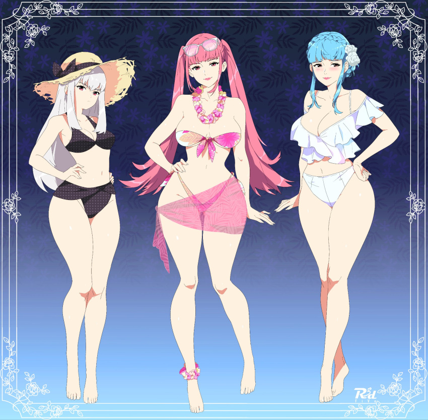 Tags: 3girlsartist namebarefootbikiniblue hairbustycurvyfire emblemfire emblem: three housesflower in hairhand on hiphilda valentine gonerilhipsimageboardlight skinlight-skinned femalelysithea von ordeliamarianne von edmundpink hairr3dfiverule 34sunglasses on headsunhatswimsuitthick thighswhite hair