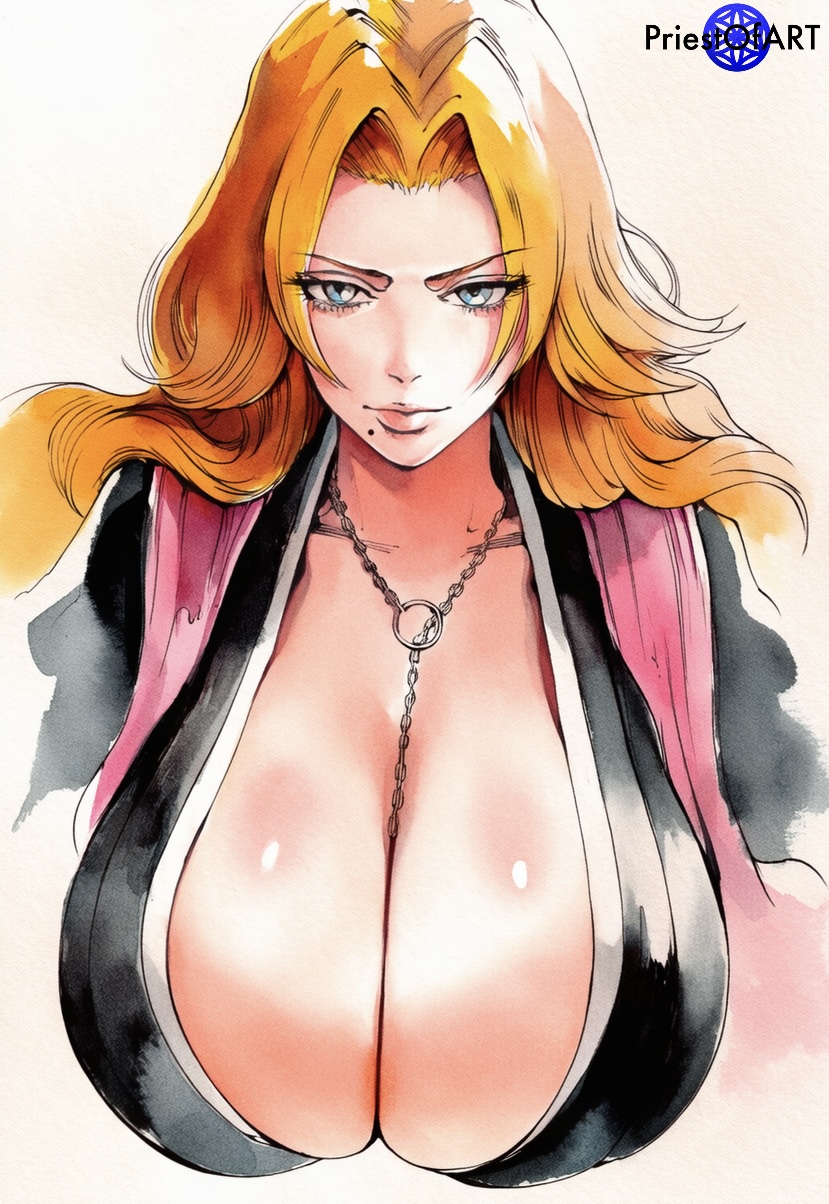 Tags: 1girlsai generatedbig breastsbleachblue eyesbustychaincleavagecolorfemalefemale onlyhuge breastsimageboardlarge breastsmatsumoto rangikumoleorange hairpriestofartrule 34simple backgroundsolosolo femaletagmetagme (artist)tagme (character)upper bodywatercolour (artwork)watermarkwhite background