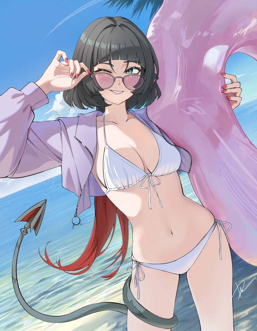 Tags: absurdresadjusting eyewearanimal earsbikiniblack hairblue skybreastscloudcommentarydai (tdaitw)dayenglish commentaryfemalegreen eyesgrinhighresholdingholding swim ringimageboardinnertubejacketjane doe (zenless zone zero)large breastslong hairlooking at viewermouse earsmouse girlmouse tailmulticolored hairoceanone eye closedpurple innertubepurple jacketpurple-tinted eyewearred hairrule 34sharp tailskysmilesolostandingsunglassesswim ringswimsuittailtail around own legthighstinted eyewearwhite bikinizenless zone zero