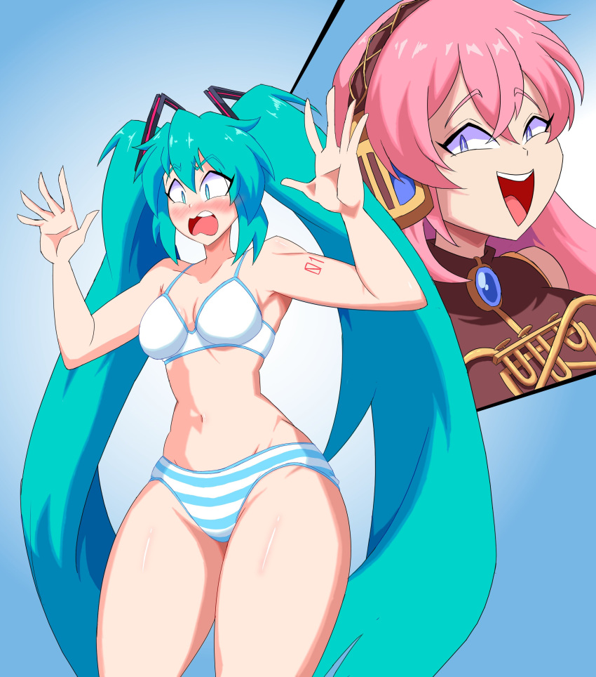 Tags: 20252girlsaqua eyesaqua hairarm tattooblue pantiesblushbraembarrassedfemalehatsune mikuimageboardimsomethingradicalmegurine lukamismatched underwearnavelopen mouthpantiesrule 34standingstriped pantiessurprisedtagmetattoothick thighsthighstwintailsvery long hairvocaloidwhite bra