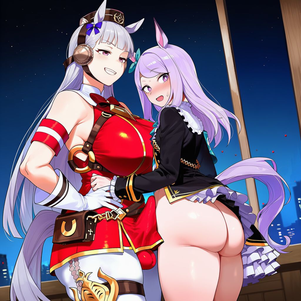Tags: 1girls2girlsai generatedanimal earsarmbandassbangsbare shouldersblushbreastserection under clothesfuta on femalefuta with femaleglovesgold ship (umamusume)grinhathorse earshorse girlhorse tailimageboardlarge breastslong hairlooking at viewermejiro mcqueen (umamusume)multiple girlsnightnight skypurple eyespurple hairracerairule 34sideboobskirtskysmilestar (sky)starry skytailumamusumeumamusume pretty derbyvery long hairwhite gloveswhite legwearyuri