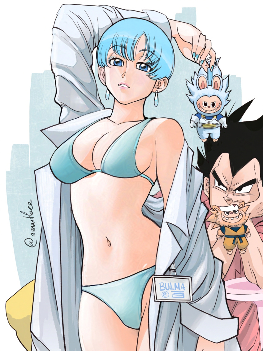 Tags: 1boy1girlsamartbeeartist signaturebikiniblack hairblue eyesblue hairbulma briefscanon coupledragon balldragon ball zearringshusband and wifeimageboardlabcoatlabubulight skinlight-skinned femalelight-skinned maleopen labcoatpainted fingernailsposingrule 34vegeta