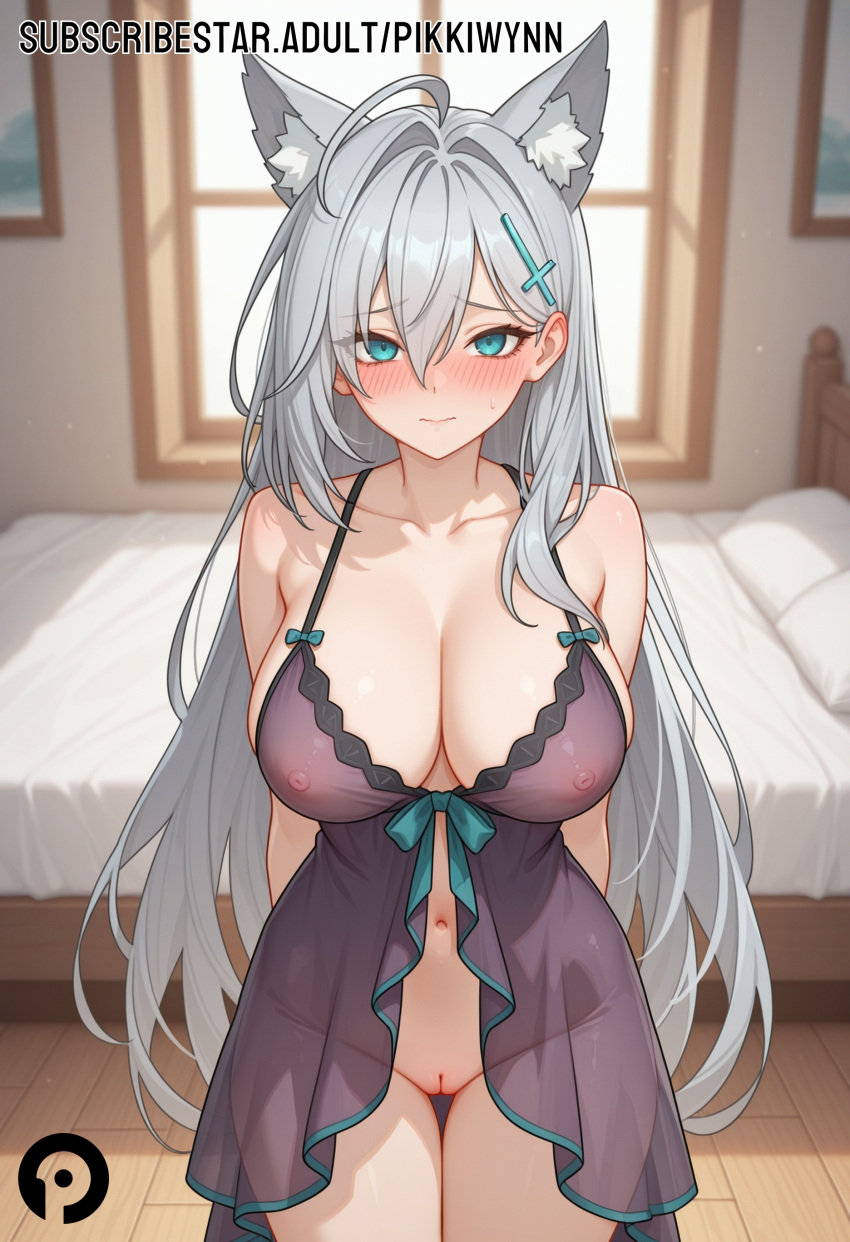 Tags: ahogeai generatedalternate costumeanimal ear fluffanimal earsaqua eyesarms behind backbabydollbangsbare shouldersbedbedroomblue archiveblue eyesblushbowbreastscleavageclosed mouthcollarbonecovered nipplescowboy shotcross hair ornamentextra earsfemalegrey hairhair between eyeshair ornamentimageboardindoorslarge breastslingerielong hairlooking at viewernavelnipplespikkiwynnpussyrule 34see-throughshiroko (blue archive)solostandingstomachthigh gapunderwearvery long hairwindow