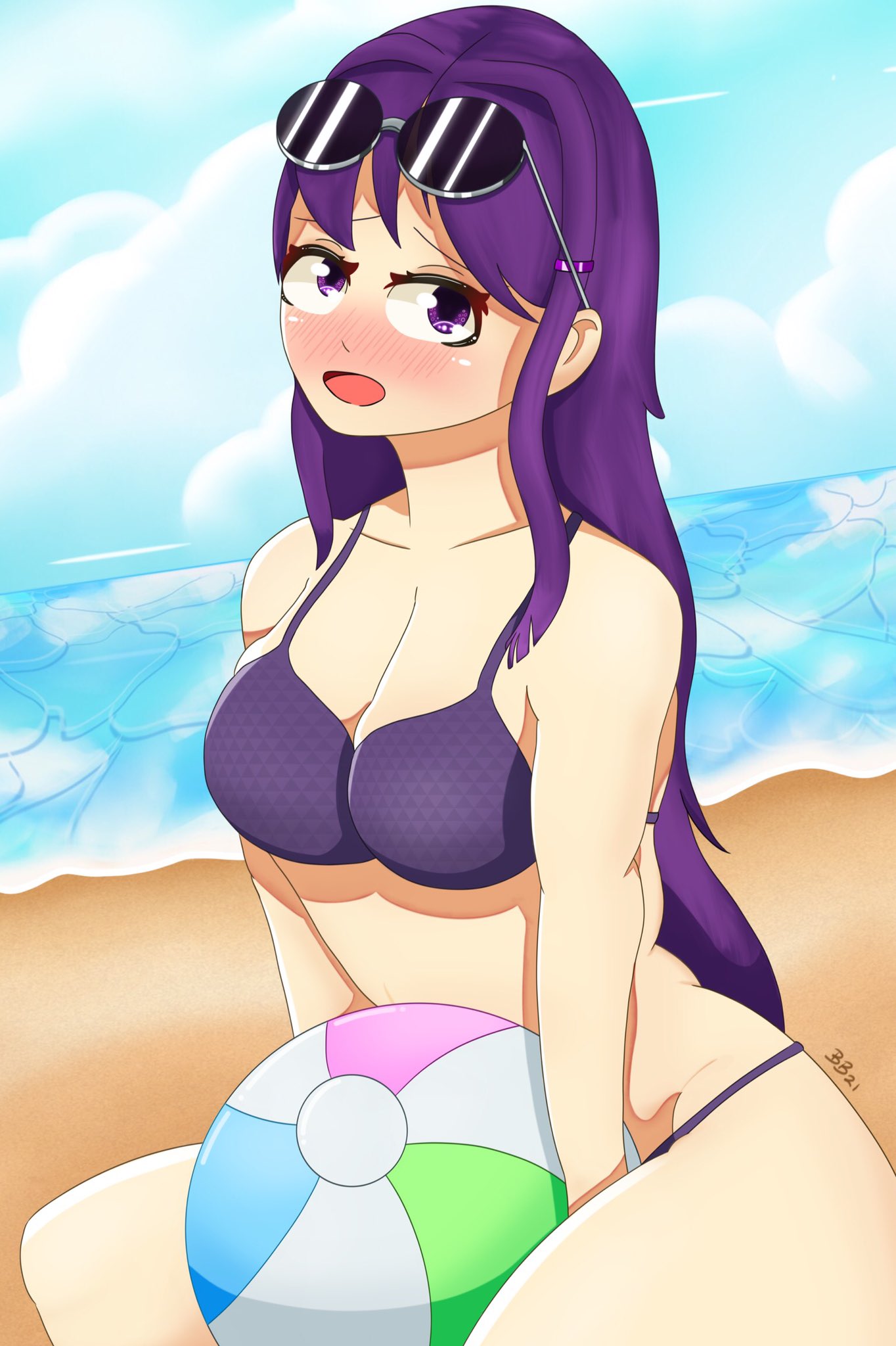 Tags: ballbboiartsbeach ballbikiniblushbreastscleavagedoki doki literature clubeyes openglassesglasses on headimageboardlong hairopen mouthpurple bikinipurple eyespurple hairRule34yuri (doki doki literature club)