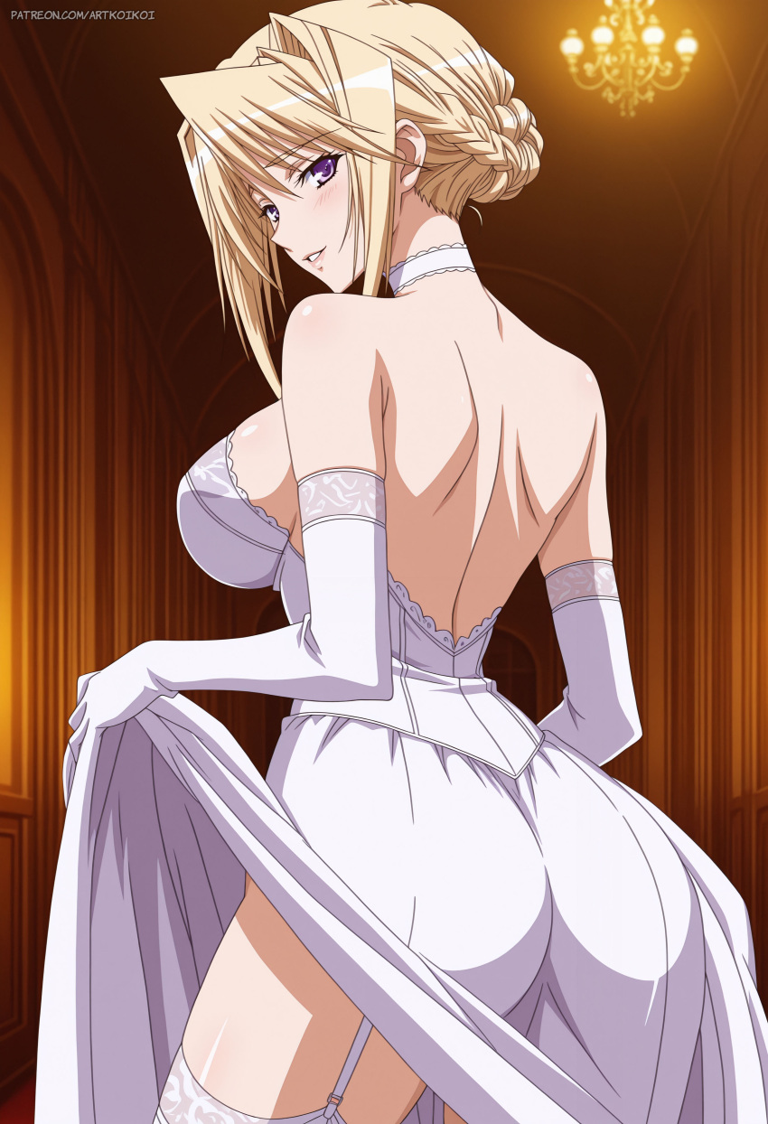 Tags: ai generatedartkoikoiasianasian femaleback viewbig breastsblonde hairbridal gauntletsbridechokercleavagedresselbow gloveselegantelegant dressgarter beltgarter strapshair uphighreshourglass figureimageboardlifting skirtlooking at viewerpatreonpatreon usernameprincess loverpurple eyesrule 34stockingssylvia van hossentied hairwedding dresswedding lingerie