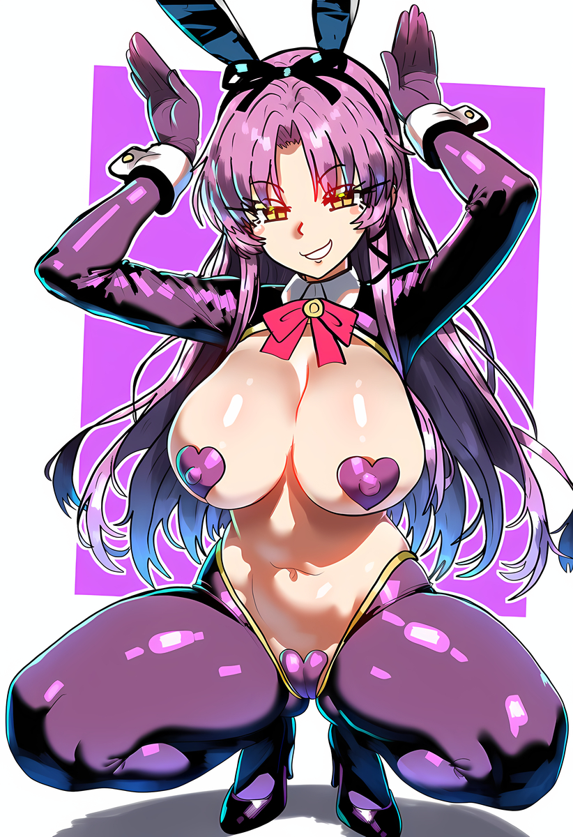 Tags: ai generatedbunny posebunnysuitcameltoeeiyuu densetsuimageboardlarge breastspastiespurple hairrenne brightreverse bunnysuitrule 34smirksquattingsweeetdonnuttrails of (series)