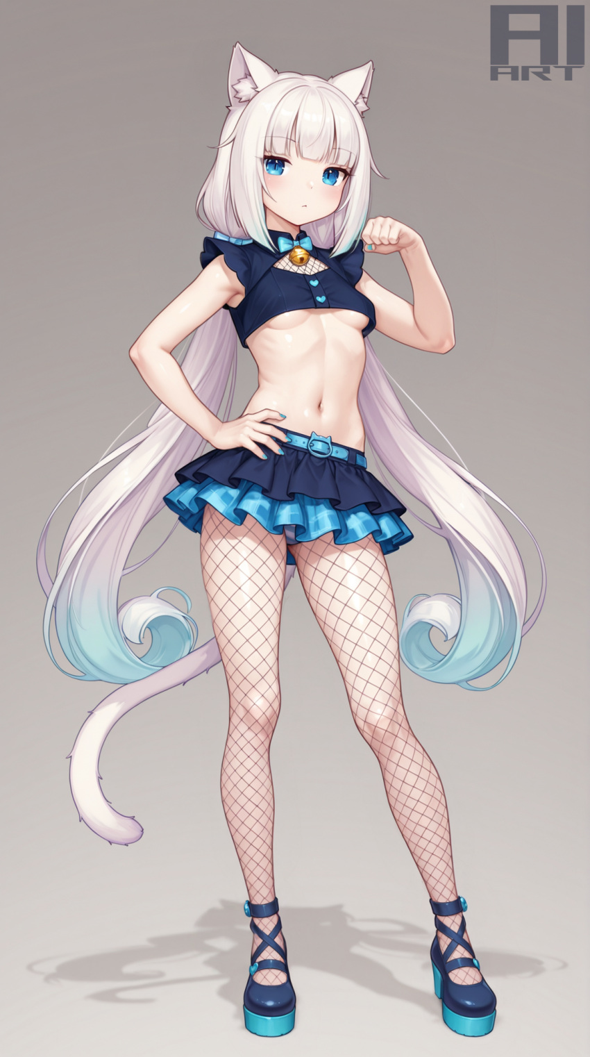 Tags: absurd resai generatedbell collarbelt buckleblue eyescat earscat eyescat tailcatgirlclothedfemalefishnet legweargradient hairhand on hipheel bootsimageboardlight blushlooking at viewerlow twintailsmicroskirtmidriffnavelpaw poserule 34Rule34simple backgroundsolostandingstriped pantiesthighstieu 537542069underboobvanilla (sayori)watermark